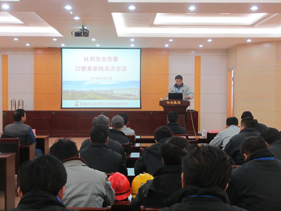 12月12日下午,杜邦安全改善項(xiàng)目年度審核末次會(huì)議在江山股份西區(qū)6號(hào)會(huì)議室召開。該公司總經(jīng)理薛健發(fā)表重要講話。 12月8日至11日,杜邦審核老師對(duì)我公司杜邦安全改善項(xiàng)目進(jìn)行階段性審核。本次審核依據(jù)的是杜邦安全管理系統(tǒng)的行為安全(安全文化機(jī)制)和工藝安全(風(fēng)險(xiǎn)管理機(jī)制)22要素審核清單。審核老師主要通過訪談、查閱、觀察三種方法了解公司當(dāng)前的HSE管理現(xiàn)狀,并進(jìn)行審核評(píng)分。