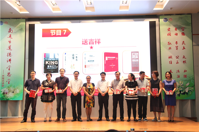 本次活動圍繞“誦經(jīng)典”“學模范”“展風采”“話廉潔”“觀情景劇”“談感悟”“送吉祥”“唱歌曲”八個環(huán)節(jié)開展。詩朗誦《實干才能夢想成真》重溫了習總書記提出的“中國夢”,堅定了大家在平凡崗位上創(chuàng)造不平凡的信心;江天化學吳松華、精華集團朱玉娟兩位同志的先進事跡讓大家在身邊人、身邊事中找到感動;情景劇《春風里的故事》讓大家在忍俊不禁中體味到資產(chǎn)管理一線員工的不易和他們迎難而上的信心;一曲《真心英雄》展現(xiàn)出了集團職工團結向上的蓬勃朝氣,也將活動推向高潮。在“送吉祥”環(huán)節(jié),集團領導將精心挑選的《投資最重要的事》等金融書籍贈予各投資企業(yè)代表,勉勵他們加強學習,不斷創(chuàng)新,用拼搏和奉獻實現(xiàn)集團的跨越發(fā)展。