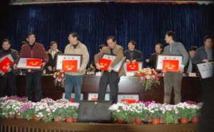 會議由徐憲華總經理主持,楊揚董事長作了題為《鞏固雙層經營成果,加速又好又快發(fā)展》的工作報告。報告分三個部分,一是總結了2007年的工作情況:全年完成工業(yè)投入6.29億元,同比增長44.3%;實現(xiàn)銷售收入67.9億元,同比增長20.1%;利潤完成3.7億元,同比增長44.1%;國有資產收益收繳率達99%以上,資產保值增值率達112.73%,凈資產收益率達12.8%;未屬地管理企業(yè)無重特大安全事故發(fā)生;較好地完成了資本運作、企業(yè)搬遷、園區(qū)改造、資產管理、企業(yè)改革和維護穩(wěn)定等工作任務,是組建以來實現(xiàn)跨越最明顯的一年。二是回顧了組建三年來的成果,主要是:建立制度、完善體系;制定目標,明確定位;加強監(jiān)控,確保增值;積極運作、雙層經營;調整結構、改善環(huán)境;攻堅克難,推進改革;注重班子建設,落實一崗雙職。三是提出了2008年工作指導思想、具體目標和措施,明確按照堅持“雙層經營、有進有退、科學監(jiān)管、三創(chuàng)精神、人才興業(yè)”的思路,加速實現(xiàn)又好又快發(fā)展。