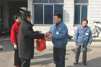 2007年春節(jié)剛過(guò),公司領(lǐng)導(dǎo)班子深入各投資企業(yè)開(kāi)展慰問(wèn)活動(dòng)。正要出發(fā),市經(jīng)貿(mào)委主任蔡惠中一行上門慰問(wèn)