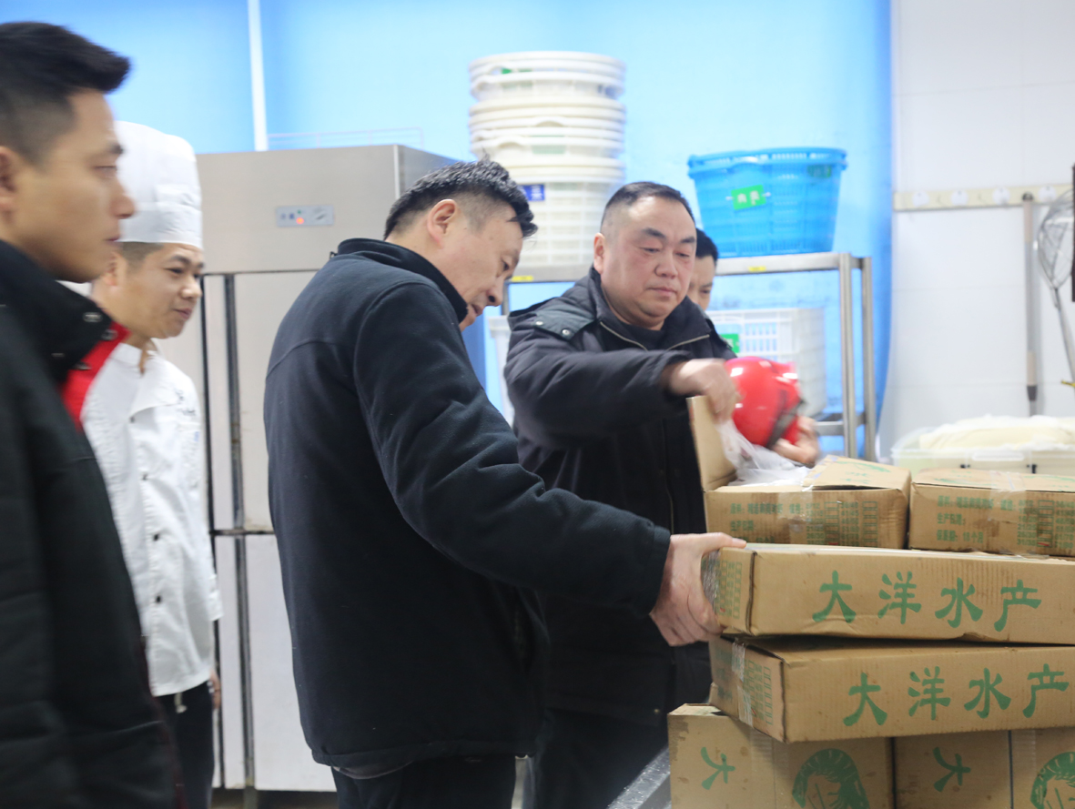 薛總首先檢查了食堂春節(jié)期間食品準(zhǔn)備和食堂安全工作。要求后勤進(jìn)一步完善節(jié)日期間菜品,讓員工節(jié)日期間在公司加班過(guò)得舒心,過(guò)個(gè)穩(wěn)定、和諧的新年。