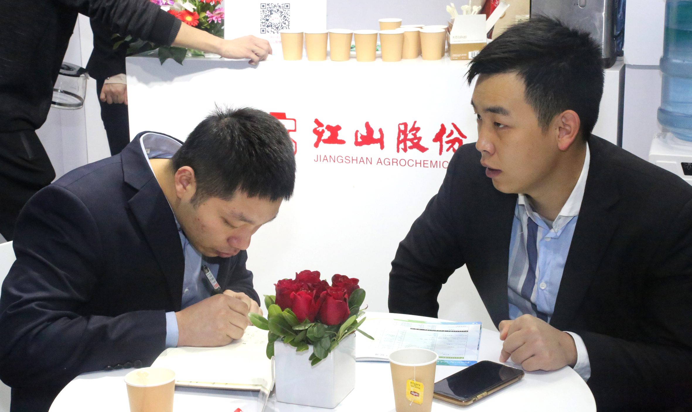 此次江山股份參展的產(chǎn)品有除草劑、殺蟲劑、殺菌劑、新材料四大類30多個品種,公司展位吸引了多個國家和地區(qū)的專業(yè)客戶的目光,他們紛紛前來洽談咨詢,尋求合作商機(jī)。公司外貿(mào)部的工作人員熱情地接待前來咨詢洽談的客戶朋友,并細(xì)致耐心地講解產(chǎn)品和使用技術(shù),許多客商現(xiàn)場達(dá)成初步合作意向。