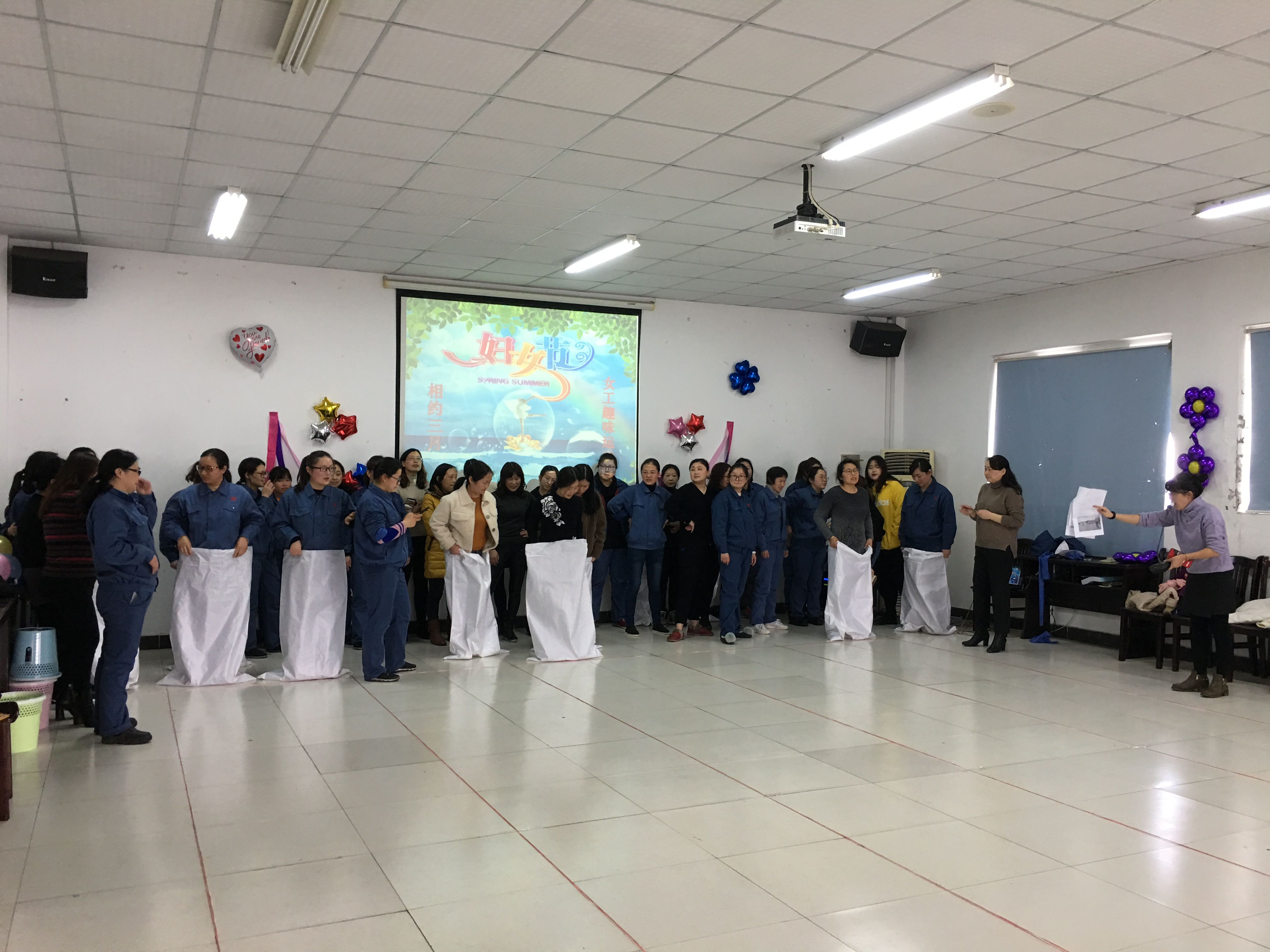 為慶祝廣大女性的節(jié)日,歡度第103個(gè)“三?八”國(guó)際婦女節(jié),激發(fā)女工積極向上、努力工作的精神風(fēng)貌、提高女工凝聚力與團(tuán)隊(duì)合作精神,豐富女工的文化生活,江蘇寶靈化工股份有限公司工會(huì)于3月8日下午在食堂二樓大教室成功舉辦了“相約三月·女工趣味運(yùn)動(dòng)會(huì)”。運(yùn)動(dòng)會(huì)設(shè)置了三人四足、袋鼠跳接力賽、雙人夾球接力跑、沙包投準(zhǔn)、夾玻璃彈珠接力等五個(gè)項(xiàng)目,采取以小組為單位、團(tuán)體賽的方式按總得分決出優(yōu)勝組。女職工們踴躍報(bào)名,比賽時(shí)全情投入,分秒必爭(zhēng),默契配合,期間有人即使摔倒也顧不上疼痛立刻爬起繼續(xù)奔跑,仿佛一下又回到了年少青春時(shí)期的校園賽場(chǎng)。此起彼伏的加油聲,你爭(zhēng)我趕的汗水,開(kāi)懷舒暢的笑容,此時(shí)的賽場(chǎng)已完全沉浸在歡樂(lè)的海洋!