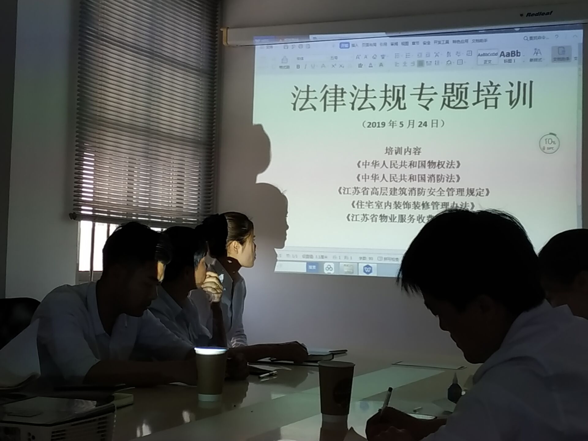為迎接“安全月”到來,加強(qiáng)物業(yè)安全管理,南通國(guó)城投資發(fā)展有限公司于5月24日下午13:30時(shí)在國(guó)城生活廣場(chǎng)B幢402會(huì)議室組織了法律法規(guī)的專題講座,公司物管中心及金科物業(yè),綠城物業(yè)全體管理人員及部分保安人員參加了本次培訓(xùn)。
