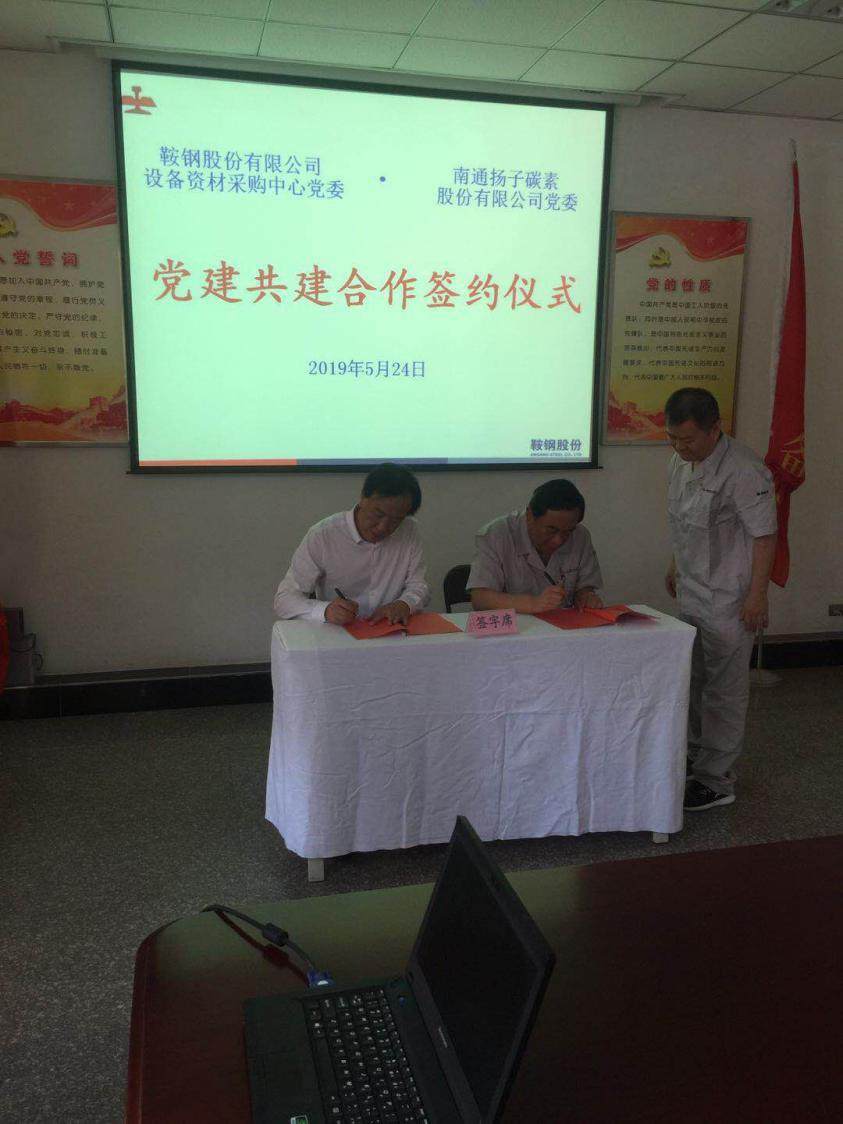 5月24日,南通揚(yáng)子碳素股份有限公司與鞍鋼股份設(shè)備資材采購中心黨建共建合作協(xié)議簽字儀式在采購中心機(jī)關(guān)黨員活動(dòng)室舉行。采購中心黨委書記于利與揚(yáng)子碳素黨委副書記、總經(jīng)理郭承新代表各自公司在黨建共建合作協(xié)議上簽字。