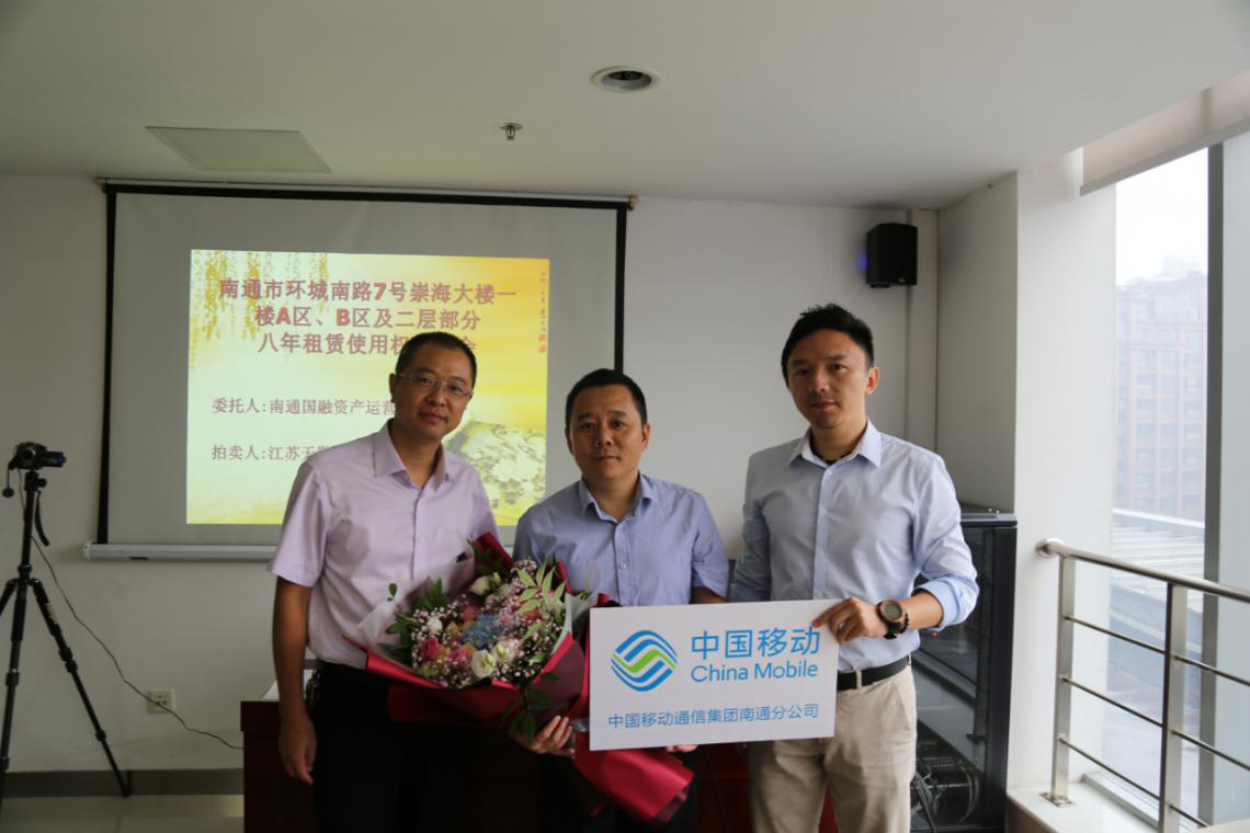 在宣讀了房屋租賃使用權(quán)拍賣的特別規(guī)定等文件并確認(rèn)各競租人無異議后,現(xiàn)場監(jiān)拍人遞交了本場拍賣會的底價函。經(jīng)拍租,中國移動通信集團江蘇有限公司南通分公司代理人、張家港保稅區(qū)佑福珠寶貿(mào)易有限公司代理人分別拍中崇海大樓A區(qū)八年租賃使用權(quán)、B區(qū)八年租賃使用權(quán),并簽署了成交確認(rèn)書,成交年租金合計達620萬元,八年租金總額達4960萬元。公司領(lǐng)導(dǎo)代表公司向房屋競租人遞送了鮮花表達祝賀并合影留念。統(tǒng)一規(guī)劃,統(tǒng)一布局,統(tǒng)一招租,統(tǒng)一競租,國融公司充分挖掘崇海大樓優(yōu)越的商業(yè)地段和濃厚的商業(yè)氛圍優(yōu)勢,轉(zhuǎn)化為優(yōu)良、持久、高效的經(jīng)營收益,實現(xiàn)了該處資產(chǎn)科學(xué)升值。公司將以崇海大樓成功招租的經(jīng)驗為借鑒,繼續(xù)做好所管理國有資產(chǎn)的升級改造,切實履行好國有資產(chǎn)保值增值的職責(zé),推動企業(yè)的高質(zhì)量發(fā)展。