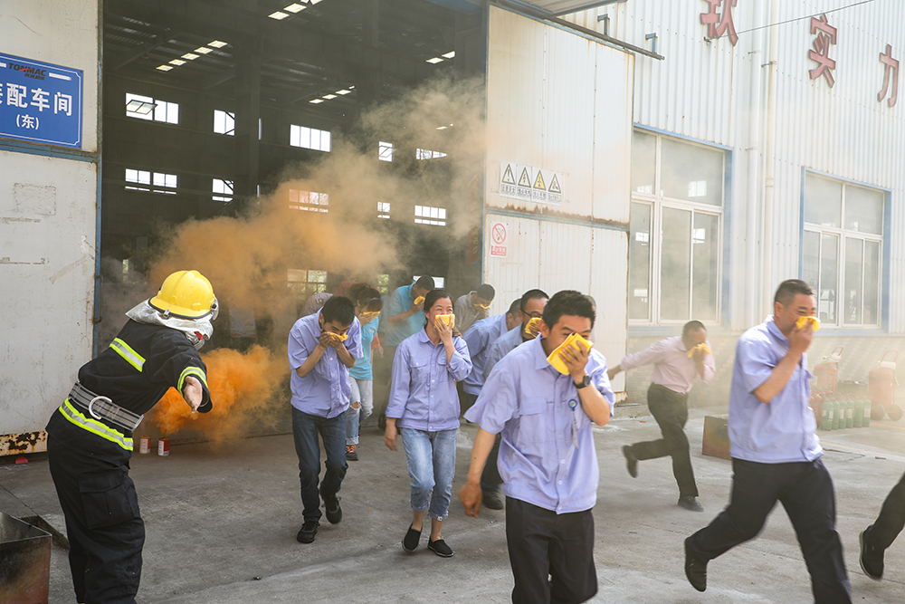 隨后,進(jìn)行了 “安全生產(chǎn)月”主題橫幅簽名活動(dòng)和全體人員合影。在啟動(dòng)儀式當(dāng)天,南通機(jī)床還組織開展了消防應(yīng)急演練,其內(nèi)容包括人員應(yīng)急疏散、傷員急救、微型消防站演練、100米接力滅火等消防救援項(xiàng)目。天生港消防救援中隊(duì)李隊(duì)長就南通機(jī)床應(yīng)急演練作了點(diǎn)評,他要求每位參與者學(xué)會(huì)滅火器正確使用方法,掌握火場逃生基本常識(shí),提高自我保護(hù)意識(shí),化解風(fēng)險(xiǎn)自救能力,達(dá)到應(yīng)急演練的預(yù)期目的。 儀式最后,南通市港閘區(qū)安監(jiān)局丁德勝作出指示:企業(yè)員工要以高度負(fù)責(zé)的主人翁精神,主動(dòng)擔(dān)當(dāng)安全生產(chǎn)作為。企業(yè)領(lǐng)導(dǎo)層要正確處理好企業(yè)發(fā)展與安全生產(chǎn)的關(guān)系,堅(jiān)決防范和杜絕重特大安全生產(chǎn)事故的發(fā)生。時(shí)刻保持敬畏之心,排查隱患、堵塞漏洞,進(jìn)一步夯實(shí)安全生產(chǎn)基礎(chǔ)。同時(shí)要加強(qiáng)隊(duì)伍建設(shè),強(qiáng)化作風(fēng)錘煉,注重培訓(xùn)演練,提高防災(zāi)減災(zāi)救災(zāi)能力。