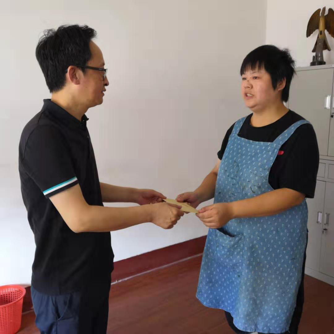 張?jiān)葡的贤ㄊ刑乩毠?,公公和丈夫因重病先后離開(kāi)人世,留下了不小的債務(wù),婆婆常年生病,女兒在北城中學(xué)上學(xué),一家全靠她一人的微薄工資維持。今年女兒丁佳琪中考發(fā)揮出色,考取了市一中。29日上午,本洲鞋業(yè)總經(jīng)理張榮慶,工會(huì)主席季華把1000元助學(xué)金送到張?jiān)剖掷?,張榮慶勉勵(lì)張?jiān)?span>努力工作,戰(zhàn)勝困難,好好培養(yǎng)女兒的學(xué)習(xí),3年后考上理想的大學(xué)。季華鼓勵(lì)她早點(diǎn)找到心儀的另一半,和她共同分擔(dān)暫時(shí)的困難。張?jiān)埔脖硎緯?huì)好好工作,鼓勵(lì)女兒努力學(xué)習(xí),將來(lái)回報(bào)關(guān)心和幫助她家的各級(jí)領(lǐng)導(dǎo)。