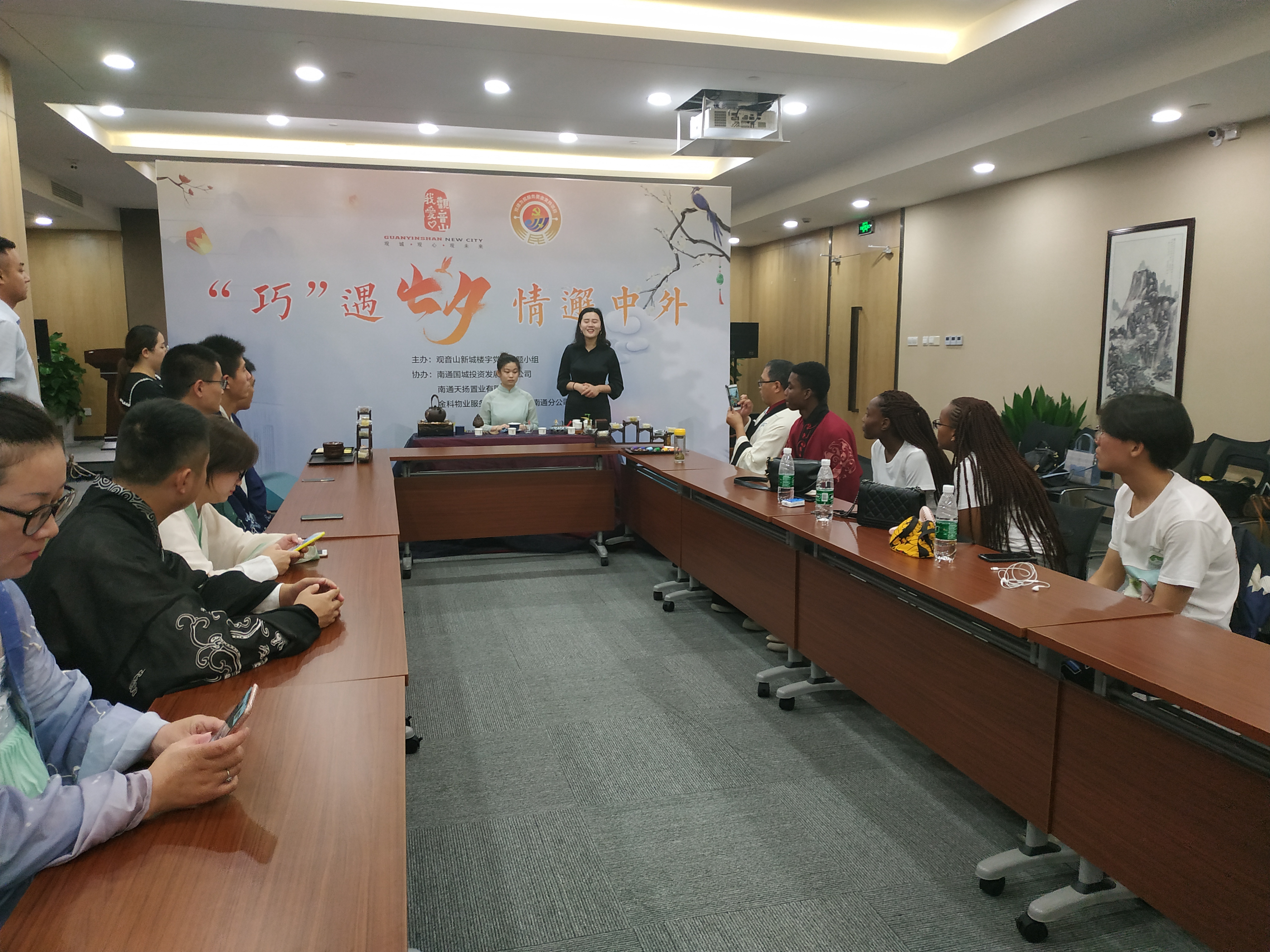 這次活動吸引了觀音山新城、國城廣場、國城璟府等社區(qū)及相關(guān)外籍來賓前來參加。本次活動圍繞七夕的由來、漢服的由來及穿戴、中國功夫茶、鵲橋搭建、中國糕點文化及糕點品鑒等展開,內(nèi)容豐富多彩,場面和諧熱烈。