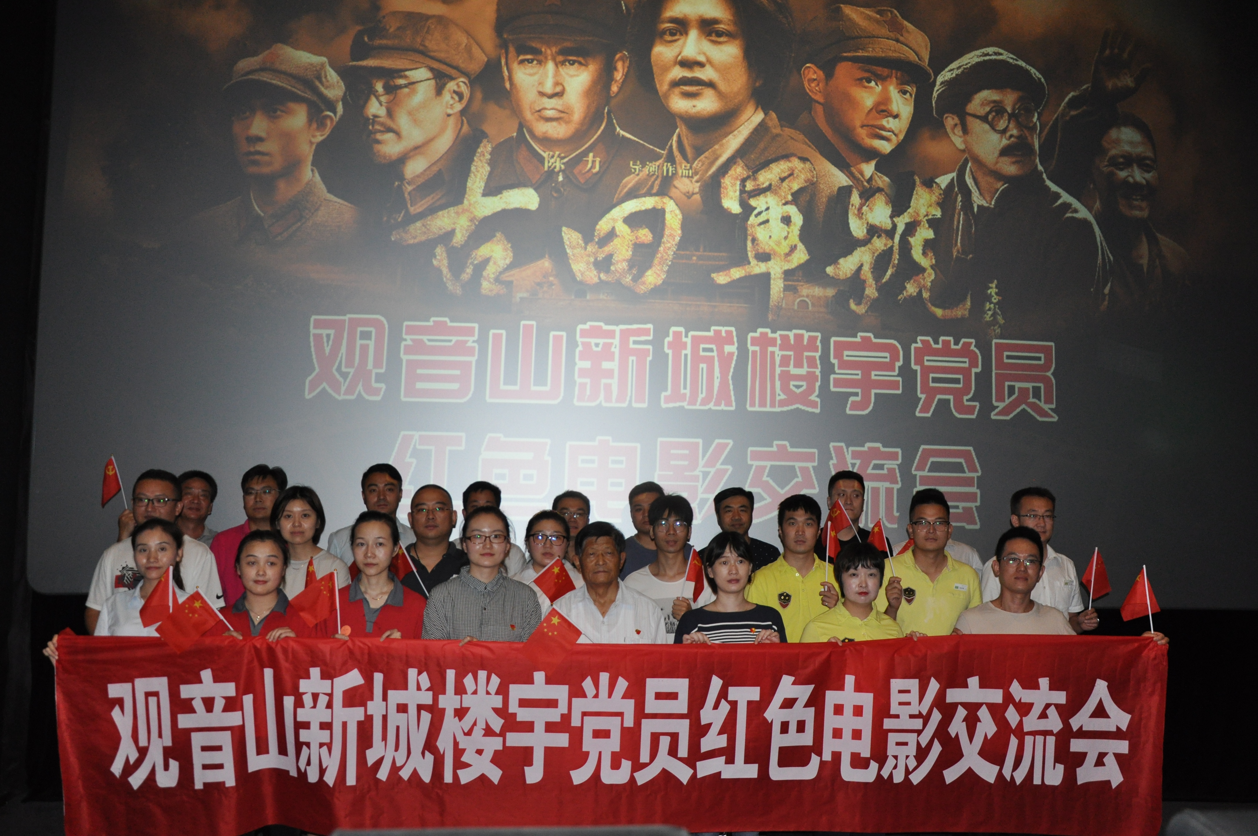 9月3日是中國人民抗日戰(zhàn)爭暨世界反法西斯戰(zhàn)爭勝利74周年紀(jì)念日。當(dāng)天中午,南通國城投資發(fā)展有限公司黨支部、觀音山街道山港橋社區(qū)等多家單位組成觀音山新城樓宇黨建課題小組,組織開展了“樓宇黨員紅色電影交流會”活動,30余名樓宇黨員、積極分子、志愿者共同走進影院,觀看電影《古田軍號》。