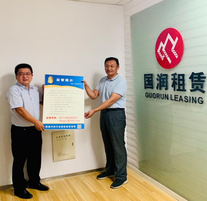 國潤租賃公司喜獲南通市金融監(jiān)管局001號(hào)監(jiān)管提示牌