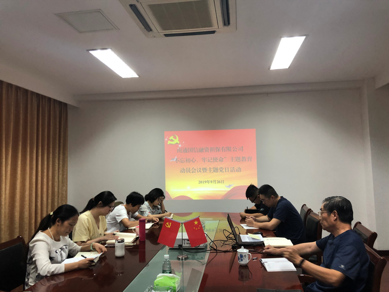 9月26日下午,南通國信投資擔(dān)保有限公司召開“不忘初心、牢記使命”主題教育動(dòng)員會(huì),公司全體黨員參加會(huì)議,入黨積極分子和群眾代表列席會(huì)議。