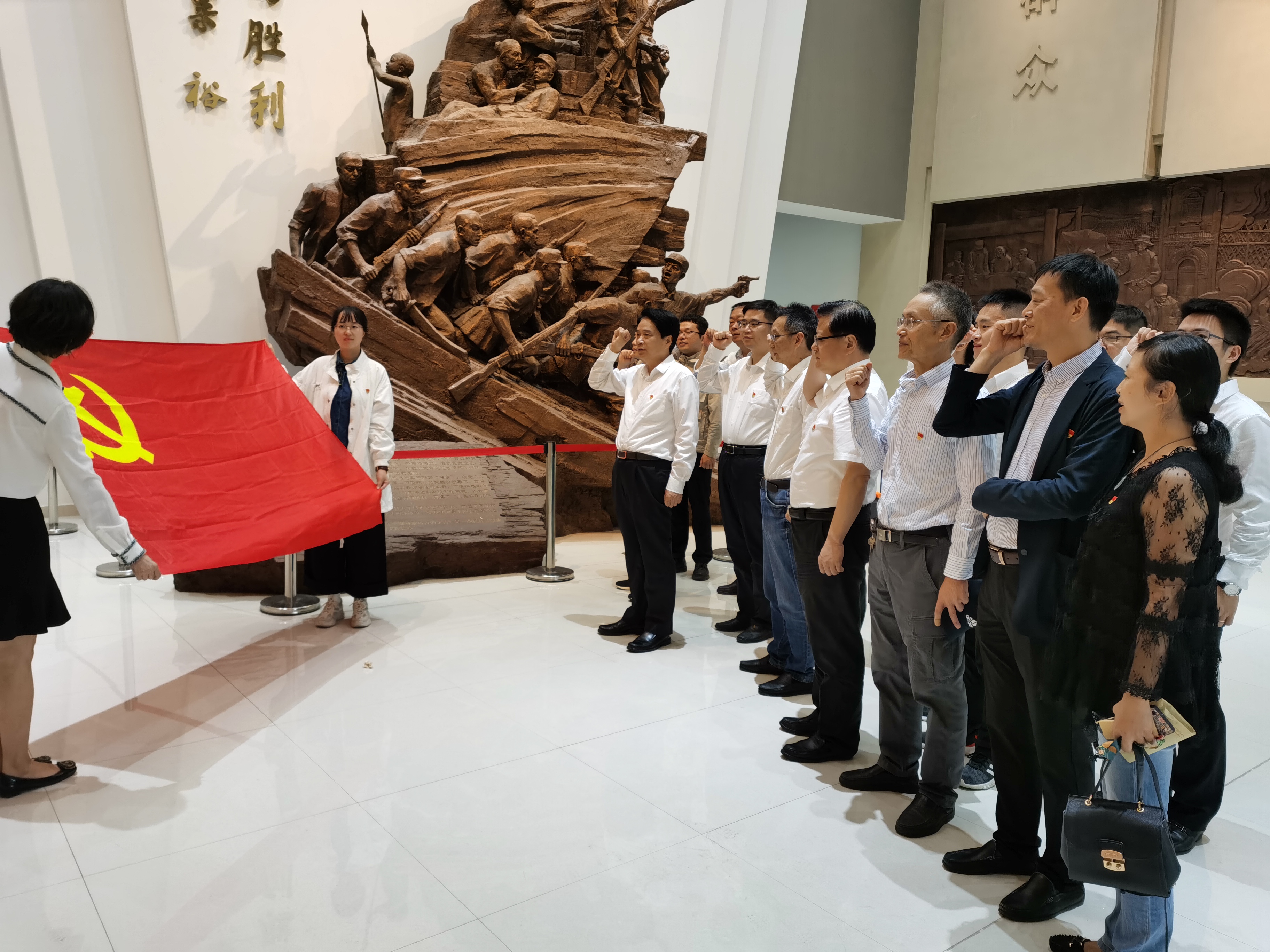 參觀過(guò)程中,全體人員都懷著無(wú)比崇敬、無(wú)比敬仰的心情,仔細(xì)觀看了陳列館內(nèi)的革命文物、先輩遺物、先烈生平、歷史照片和戰(zhàn)爭(zhēng)實(shí)物等。這些珍貴的革命遺物和大量的歷史資料,向人們真實(shí)展現(xiàn)了在那段艱苦的革命歲月里,我們的革命先輩在中國(guó)共產(chǎn)黨的堅(jiān)強(qiáng)領(lǐng)導(dǎo)下,為了抵御侵略?shī)^勇反抗、為了民族獨(dú)立浴血奮戰(zhàn)、為了人民解放頑強(qiáng)斗爭(zhēng)。讓全體人員都深切感受到中國(guó)共產(chǎn)黨人為追求理想真理、謀求人民幸福所作出的巨大犧牲和建立的不朽功勛。參觀活動(dòng)結(jié)束前,集團(tuán)黨委書記、董事長(zhǎng)杜永朝同志帶領(lǐng)全體人員,面對(duì)鮮紅的黨旗,重溫入黨誓詞。