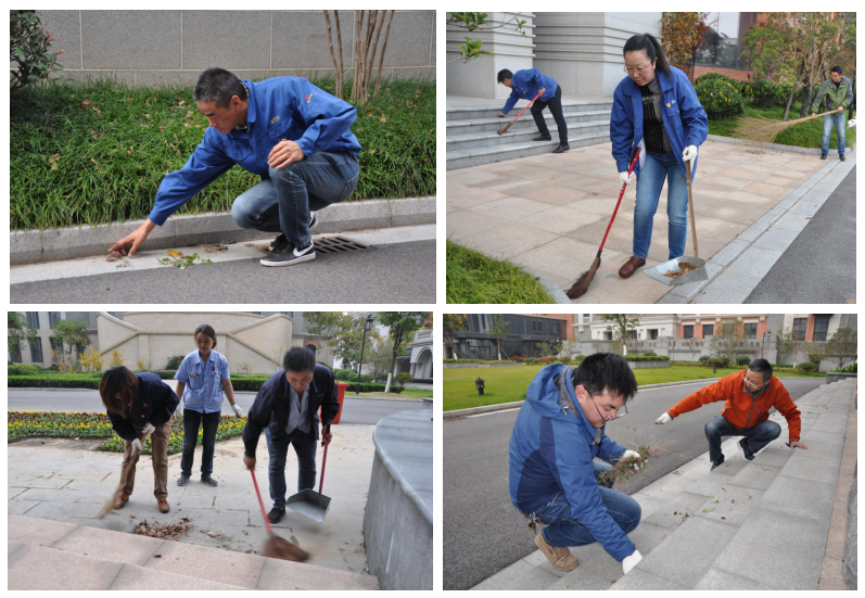 活動現(xiàn)場,在本部黨支部組織委員王建興分配下,16名黨員、1名預(yù)備黨員、2名入黨積極分子,被分為6組,分別負(fù)責(zé)園區(qū)內(nèi)6幢建筑一層及建筑周邊落葉、雜草的清理。分配完后,黨員志愿者們手持掃帚,簸箕和垃圾袋,來到指定建筑前,不怕臟、不怕累,清掃建筑一層及附近的落葉、雜物,并拔除石階上的雜草。用實際行動為打造美麗園區(qū)形象貢獻(xiàn)自己的一份力量。