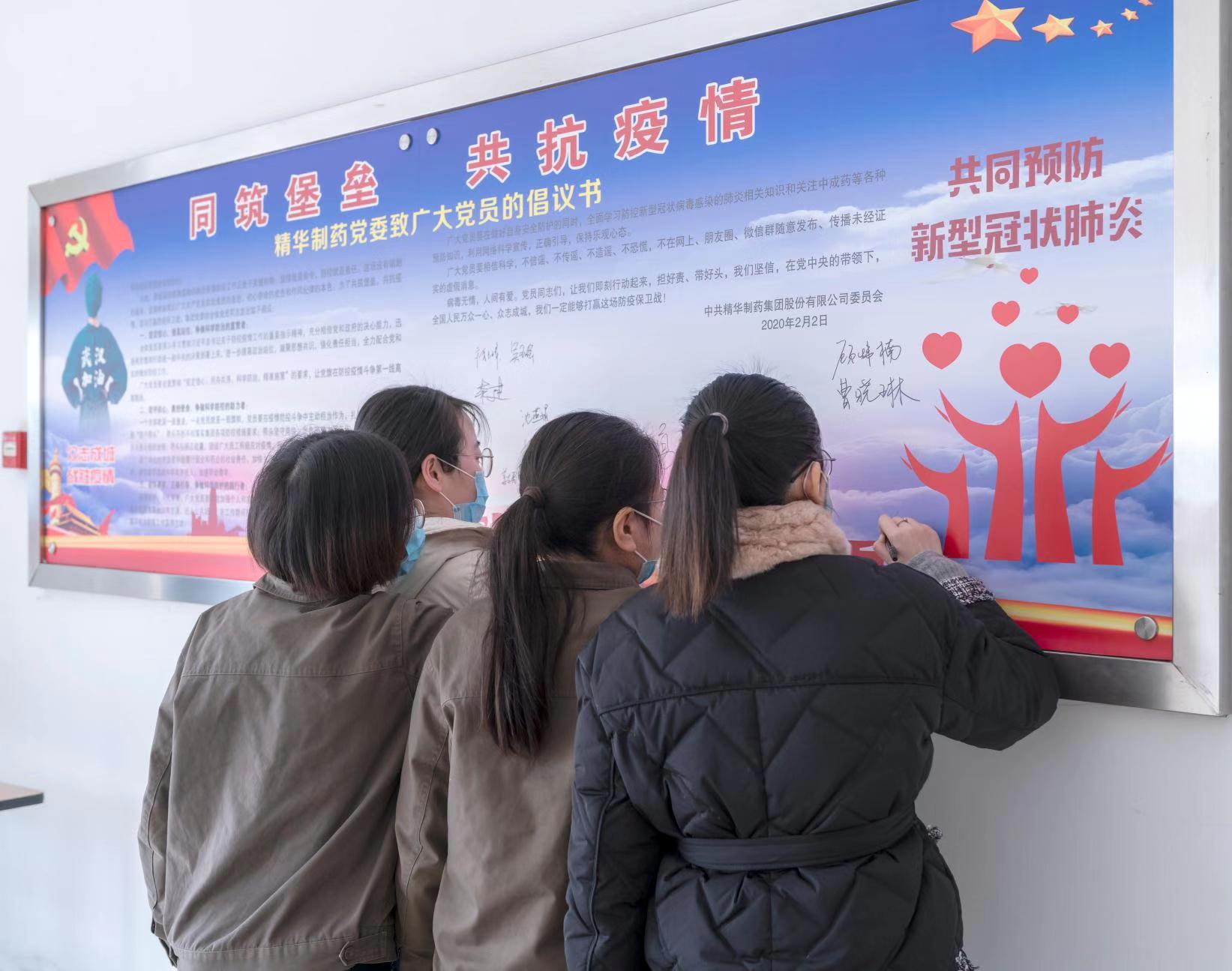精華制藥黨委發(fā)出倡議書(shū)《同筑堡壘,共抗疫情》,倡議黨員同志擔(dān)好責(zé),帶好頭,萬(wàn)眾一心,眾志成城,以高度的思想覺(jué)悟和政治站位爭(zhēng)做科學(xué)防控疫情的宣貫者、助力者和踐行者。黨委領(lǐng)導(dǎo)高度重視疫情防控工作,職責(zé)分工明確,制度規(guī)范到位,行動(dòng)快速高效,一把手親自指揮、親自部署,各級(jí)黨員干部各級(jí)領(lǐng)導(dǎo)帶頭值班,沖在疫情防控第一線,組織黨員始終堅(jiān)守崗位,守護(hù)群眾生命安全和身體健康,以實(shí)際行動(dòng)踐行初心使命。除了做好自身防護(hù)工作和日常工作外,黨員同志們還紛紛要求主動(dòng)值班,堅(jiān)守崗位。黨員帶頭到生產(chǎn)車(chē)間一線參加正柴胡飲顆粒的包裝生產(chǎn),集團(tuán)公司科室全體人員也主動(dòng)加入到包裝正柴胡飲顆粒的工作中去。 為保障職工安全健康,精華制藥防控領(lǐng)導(dǎo)小組召開(kāi)專(zhuān)題會(huì)議,制定防控工作方案,通過(guò)微信群、電話等方式部署各項(xiàng)疫情防控工作。組織各職能部門(mén)、分公司、子公司負(fù)責(zé)人對(duì)單位員工情況進(jìn)行摸排調(diào)查。凡是有疫情較重地居住史或旅行史的人員,凡是與疫情較重地外來(lái)人員有密切接觸史的人員,凡是與疑似、確診病人有接觸的人員,凡是出現(xiàn)發(fā)燒、干咳等異常情況的人員,立即上報(bào)并自我隔離觀察。堅(jiān)決杜絕疫情的傳入與傳播,努力踐行一個(gè)國(guó)有企業(yè)的社會(huì)責(zé)任。