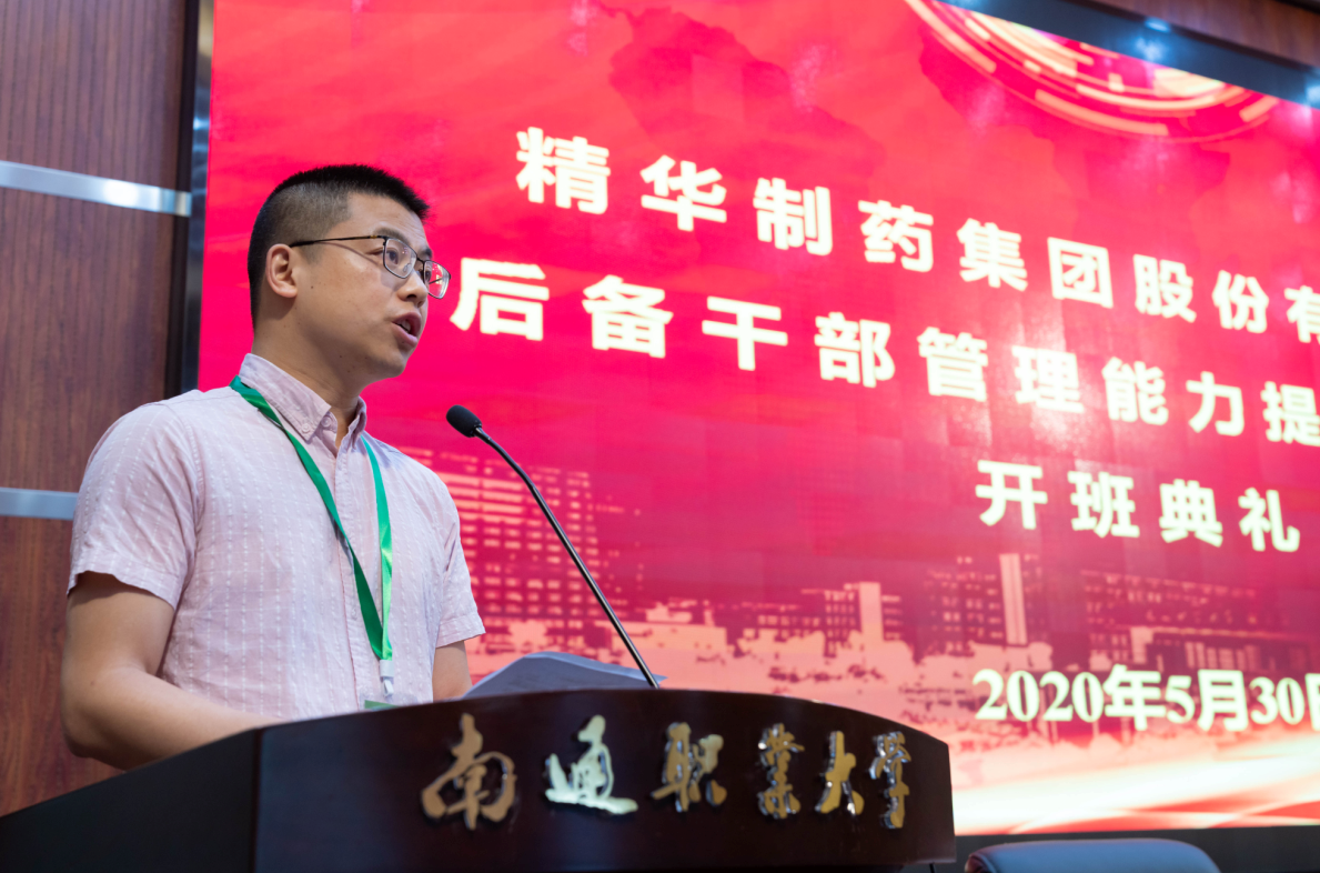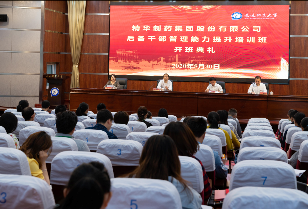 5月30日,首期精華制藥后備干部培訓班在南通職業(yè)大學圖書館報告廳正式開班。集團公司黨委副書記錢衛(wèi)峰、人力資源部副總經(jīng)理徐慧、南通職大黨委書記羌毅等人出席本次開班儀式。南通職大繼續(xù)教育學院王鑫明院長主持了本次開班儀式。