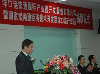 集團董事長、洋口港南通國際產(chǎn)業(yè)園開發(fā)公司董事長陳照東在儀式上致辭。他指出,作為南通國際產(chǎn)業(yè)園建設(shè)的運作平臺,新公司將根據(jù)國家產(chǎn)業(yè)政策導向和洋口港建設(shè)開發(fā)總體規(guī)劃,結(jié)合全市產(chǎn)業(yè)結(jié)構(gòu)調(diào)整戰(zhàn)略,充分發(fā)揮市開發(fā)區(qū)的招商優(yōu)勢和市級國資公司的融資優(yōu)勢,加快開發(fā)建設(shè)步伐;要堅持快節(jié)奏啟動、高起點規(guī)劃、大力度招商、規(guī)范化運作,努力將南通國際產(chǎn)業(yè)園建設(shè)成國有資本積聚、新興產(chǎn)業(yè)特色鮮明的工業(yè)園區(qū),做到“一年一個樣、三年大變樣”,為全市大港口、大園區(qū)、大產(chǎn)業(yè)戰(zhàn)略貢獻力量。