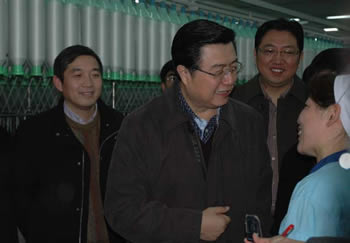 帶著市委、市政府的親切關(guān)懷,市委書記羅一民在有關(guān)部門、產(chǎn)控集團負責人陪同下來到企業(yè)一線慰問,他一邊察看企業(yè)生產(chǎn)情況,一邊與職工親切交流。生產(chǎn)組長朱玉玲顧不上擦臉上的汗,她笑著告訴羅書記:“企業(yè)效益還不錯,雖然忙了點,但干得高興,我們上下一條心,一定把這個企業(yè)建設得更好?!睂β毠兏邼q的工作熱情,羅一民高興地蹺起大拇指。他動情地說,我們每次走訪困難企業(yè),既是慰問也是學習。許多困難企業(yè)的領導班子奮發(fā)進取、默默奉獻,這正是新時期南通精神的具體體現(xiàn),也是企業(yè)危中搶機、生存發(fā)展的最大動力源泉。他祝愿在新的一年,企業(yè)全體干部職工繼續(xù)齊心協(xié)力,取得更好的發(fā)展成果。他還要求隨同慰問的經(jīng)貿(mào)委、總工會等部門同志,多關(guān)心困難企業(yè)和困難職工,切實為他們解決實際困難。