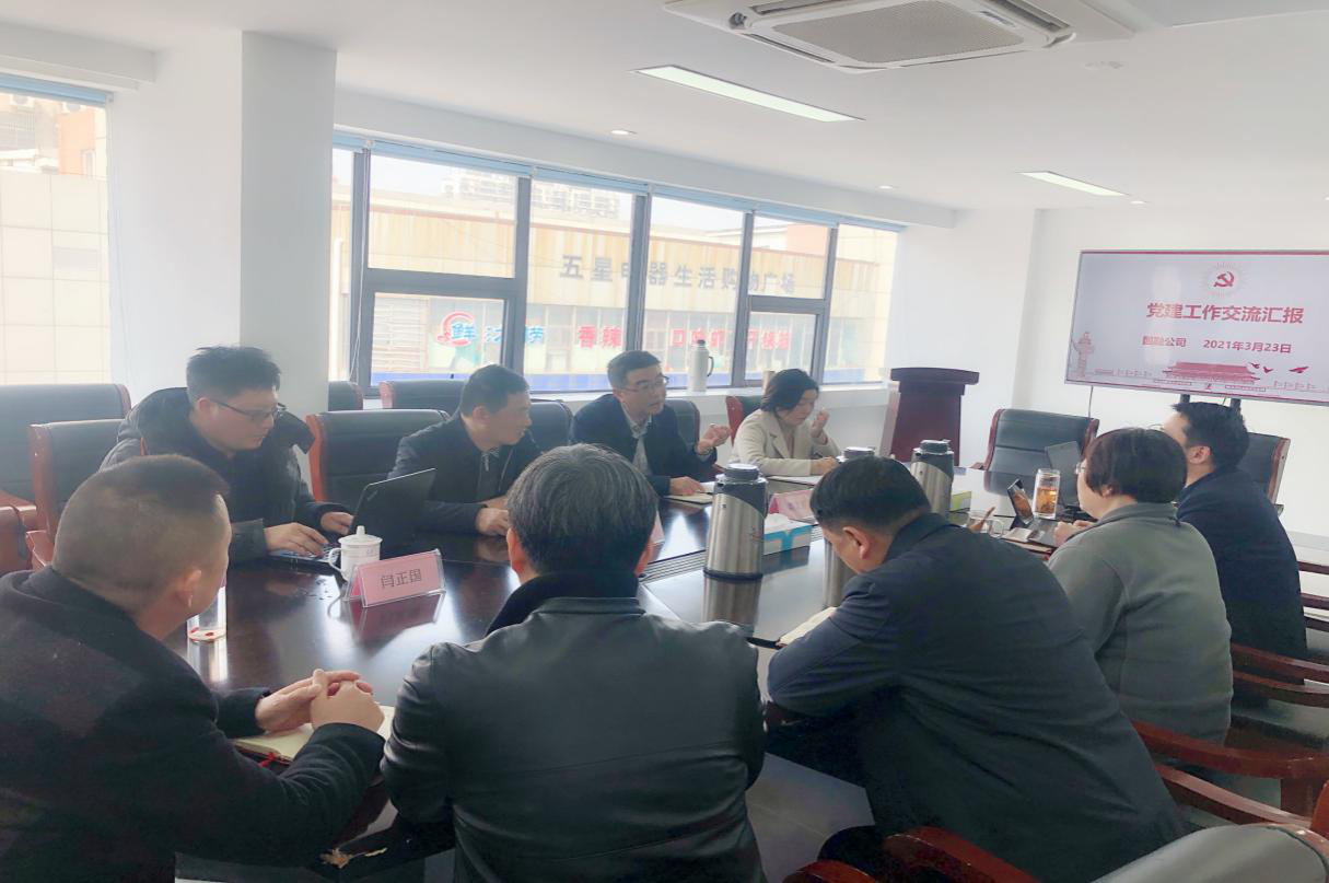 3月23日下午,江山股份黨委副書記、副總經(jīng)理樊文新、一行四人來國融公司交流黨建、信息化建設(shè)工作經(jīng)驗(yàn),國融公司領(lǐng)導(dǎo)班子成員及各黨支部書記參加了交流座談會。