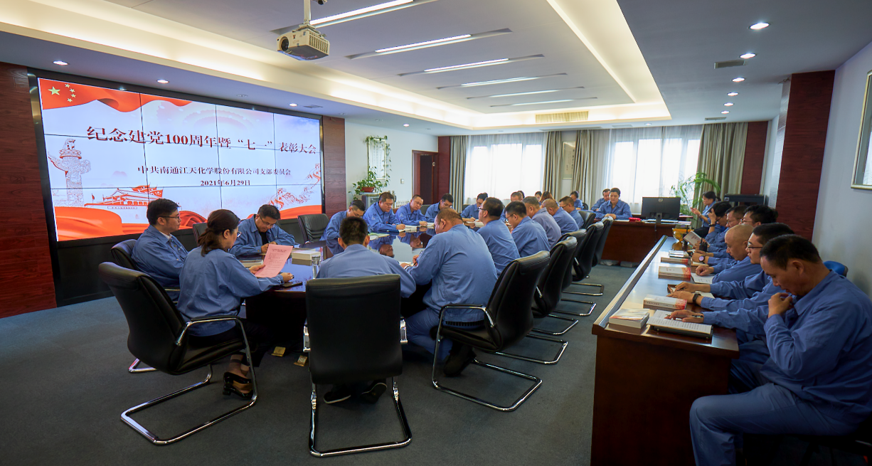 6月29日上午,南通江天化學(xué)股份有限公司黨支部在公司四樓會(huì)議室召開(kāi)紀(jì)念建黨100周年暨七一表彰大會(huì)。支部全體黨員、預(yù)備黨員、發(fā)展對(duì)象和積極分子參加了此次會(huì)議。黨支部書(shū)記陳梅主持會(huì)議。