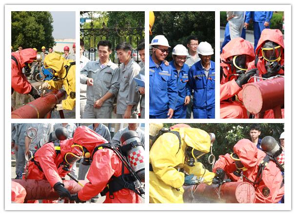 穿戴空呼器帶壓堵漏,需要檢驗(yàn)參賽隊(duì)員規(guī)范穿戴空呼器、防化服的速度和熟練程度,同時(shí)還要考驗(yàn)參賽隊(duì)員穿戴好空呼器、防化服進(jìn)行高效、快速帶壓堵漏的應(yīng)急處置技能。