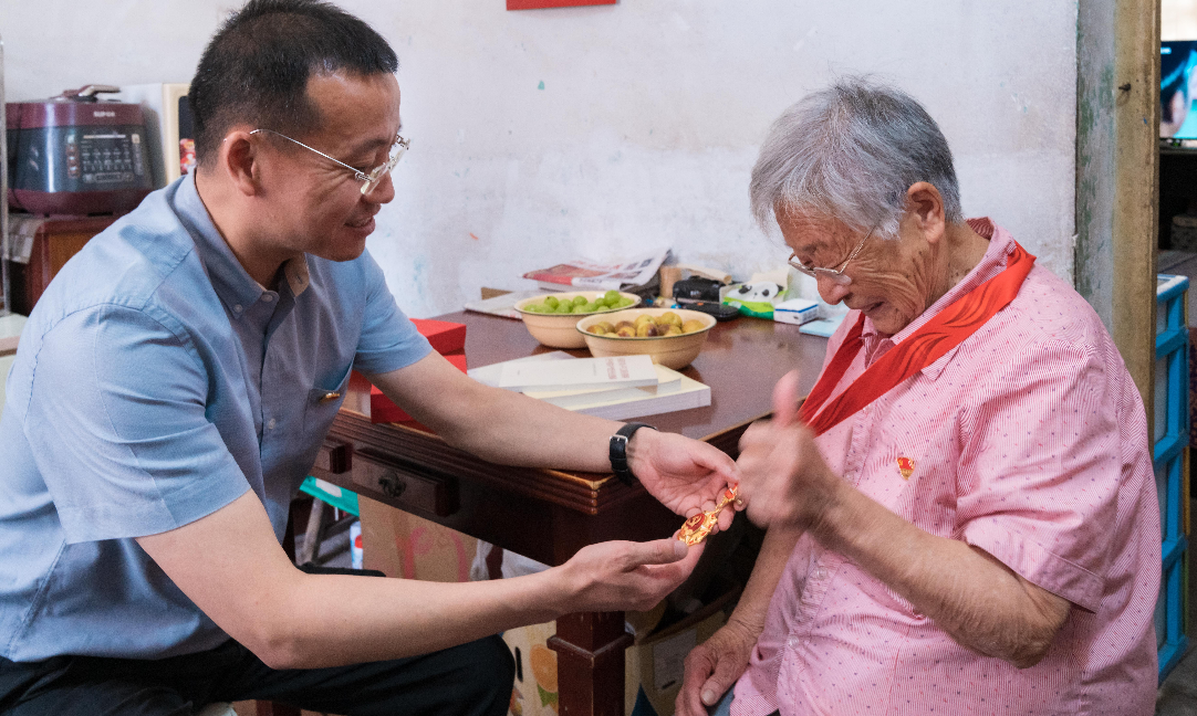 在老黨員家中,尹紅宇為老人家頒發(fā)了紀念章,向他們表達了崇高的敬意和深切的問候,并親切詢問了老人們的身體狀況、生活情況,以及當年的戰(zhàn)斗歷程,傾聽他們的心聲,叮囑他們要好好保重身體,安享晚年幸福生活。尹紅宇還為離休干部贈送了學習書籍,并送上黨組織的關(guān)懷。
