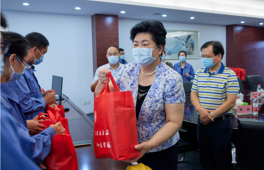 炎炎夏日,酷暑難耐。為進(jìn)一步加強(qiáng)企業(yè)基層員工疫情防控意識(shí),更好地保障一線職工群眾在高溫下正常生活,8月10日下午,市人大常委會(huì)副主任、總工會(huì)主席葛玉琴,市總工會(huì)黨組書記、副主席葛志娟到江天公司指導(dǎo)疫情防控工作,并看望慰問一線工作者。市國資委黨委副書記、副主任宋建宏,產(chǎn)控集團(tuán)黨委副書記、副董事長、總經(jīng)理顧建國,黨委副書記、工會(huì)主席成剛等領(lǐng)導(dǎo)陪同。