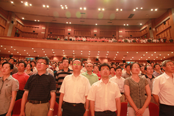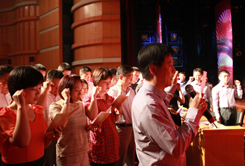 五年新跨越 歌聲獻(xiàn)給黨 ----集團隆重舉行“七一”總結(jié)表彰大會暨文藝匯演活動 6月30日下午,產(chǎn)控集團召開“七一”紀(jì)念表彰大會暨大型文藝匯演活動。集團所屬20家黨組織、近千名黨員參加活動,回顧黨的光輝歷程和“十一五”發(fā)展成果,以昂揚的歌聲表達(dá)對黨的熱愛。市國資委李桂順主任、市委組織部宋建宏處長應(yīng)邀出席,集團黨委副書記徐憲華主持大會。 大會表彰了2010年度“五好”黨組織、優(yōu)秀黨員和優(yōu)秀黨務(wù)工作者,以及在“創(chuàng)先爭優(yōu),實現(xiàn)跨越發(fā)展”暨慶祝建黨90周年系列活動中涌現(xiàn)的先進(jìn)集體和個人。全系統(tǒng)20多名新黨員面向黨旗進(jìn)行入黨宣誓,與會黨員重溫了誓詞。 集團黨委書記、董事長陳照東代表黨委作報告。他指出,全市經(jīng)濟社會發(fā)展已進(jìn)入“兩個率先”的關(guān)鍵時期,產(chǎn)業(yè)現(xiàn)代化是市委確定的三大目標(biāo)之一,產(chǎn)控集團要成為產(chǎn)業(yè)現(xiàn)代化的生力軍。他要求,圍繞“十二五”期末實現(xiàn)總資產(chǎn)、銷售額“雙兩百億”的目標(biāo),各級黨組織要引領(lǐng)科學(xué)發(fā)展,統(tǒng)籌謀劃發(fā)展思路、發(fā)展戰(zhàn)略,重點加 快洋口港新城、觀音山新城和生物科技園的新興產(chǎn)業(yè)建設(shè)和傳統(tǒng)產(chǎn)業(yè)的優(yōu)化升級;全體黨員要爭做先鋒模范,以企為家,立足崗位,創(chuàng)新、敬業(yè)、奉獻(xiàn);通過建設(shè)學(xué)習(xí)型黨組織,加強人才引進(jìn)和培養(yǎng),積極推進(jìn)民主管理,加強反腐倡廉建設(shè),以創(chuàng)先爭優(yōu)為主題創(chuàng)新黨建工作內(nèi)涵,圍繞深化改革、加快發(fā)展、維護穩(wěn)定的大局提供 堅強的政治和組織保障,為集團實現(xiàn)新的跨越保駕護航。 大會在雄壯的《國際歌》歌聲中結(jié)束。會后,以“黨旗輝映產(chǎn)控情”為主題的大型文藝匯演隆重上演,產(chǎn)控系統(tǒng)十家單位選送了精彩的歌舞、小品、詩朗誦等節(jié)目,贏得陣陣喝彩,向社會展現(xiàn)了產(chǎn)控人“齊心向黨、追求跨越”的嶄新風(fēng)貌。