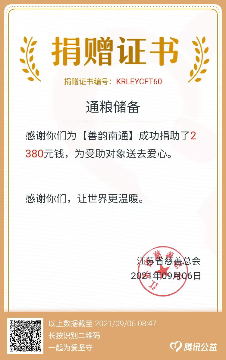 為認(rèn)真落實《中華人民共和國慈善法》,大力弘揚中華民族扶貧濟困優(yōu)良傳統(tǒng),廣泛號召國有及國有控股企業(yè)干部職工踐行社會主義核心價值觀,關(guān)愛弱勢群體,積極奉獻愛心,按市民政局等單位《2021年“博愛在南通 慈善暖江?!币蝗站杌顒臃桨浮返耐ㄖ?,在產(chǎn)控集團的統(tǒng)一領(lǐng)導(dǎo)下,通糧儲備組織全體員工于9月4日開展了線上一日捐活動。