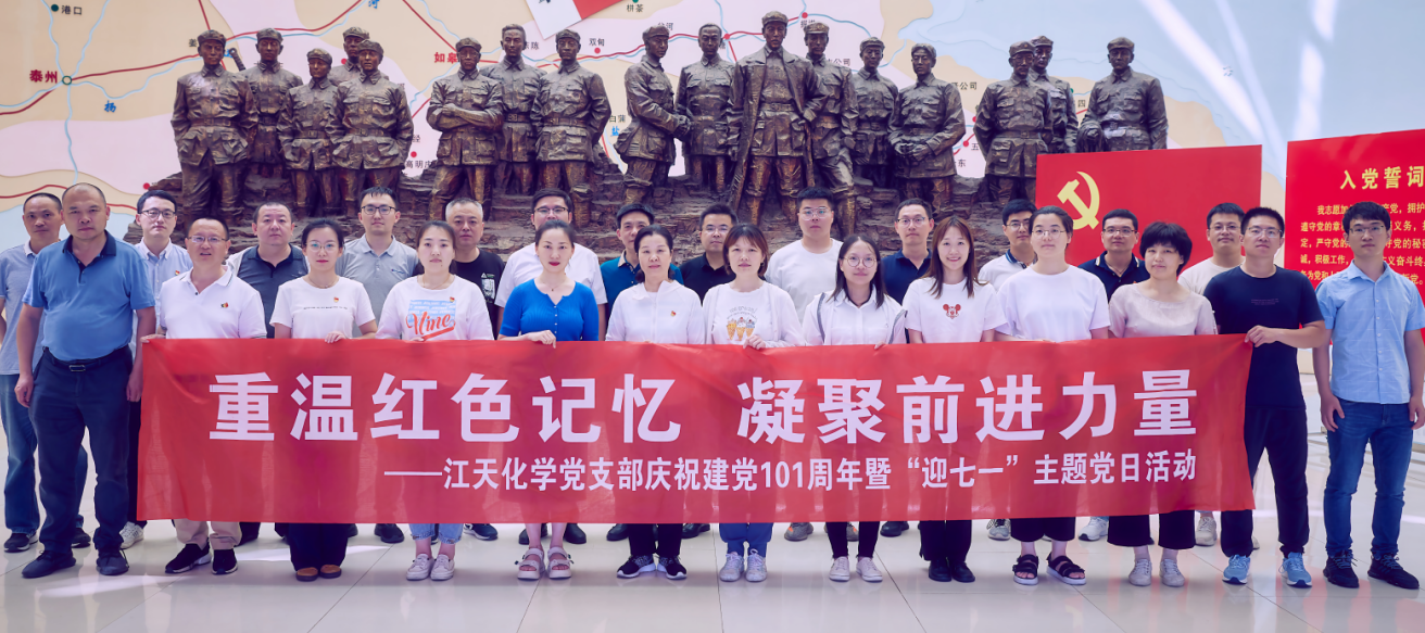 為慶祝中國共產黨成立101周年,根據(jù)公司黨支部的統(tǒng)一安排,6月26日,江天化學黨支部黨員、預備黨員、發(fā)展對象、入黨積極分子以及入黨申請人赴海安蘇中七戰(zhàn)七捷紀念館和如皋紅十四軍紀念館開展以“重溫紅色記憶 凝聚前進力量”為主題的“迎七一”主題黨日活動。