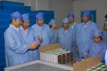 9月12日上午,南通市政府朱晉副市長、陸善平副秘書長一行來到精華制藥集團(tuán)股份有限公司調(diào)研醫(yī)藥產(chǎn)業(yè)發(fā)展工作。在王氏保赤丸生產(chǎn)車間,朱市長詳細(xì)詢問了產(chǎn)品銷售、市 場前景、質(zhì)量控制等方面的情況,他強(qiáng)調(diào),精華制藥集團(tuán)擁有王氏保赤丸、季德勝蛇藥片等一批療效確切的知名產(chǎn)品,企業(yè)要在發(fā)揮品牌影響、加強(qiáng)質(zhì)量管控、擴(kuò)大企業(yè)規(guī)模、促進(jìn)轉(zhuǎn)型升級上下功夫。朱市長要求食品藥品監(jiān)管部門要進(jìn)一步加強(qiáng)服務(wù)力度,在加強(qiáng)藥品質(zhì)量監(jiān)管、保障藥品質(zhì)量安全的同時,發(fā)揮職能優(yōu)勢幫助企業(yè)解決發(fā)展中的突出問題。 南通市食品藥品監(jiān)管局戴輝局長、市政府辦公室孫寶軍副主任陪同調(diào)研,精華制藥朱董事長匯報了企業(yè)的基本情況和促進(jìn)醫(yī)藥產(chǎn)業(yè)發(fā)展的思路和舉措。