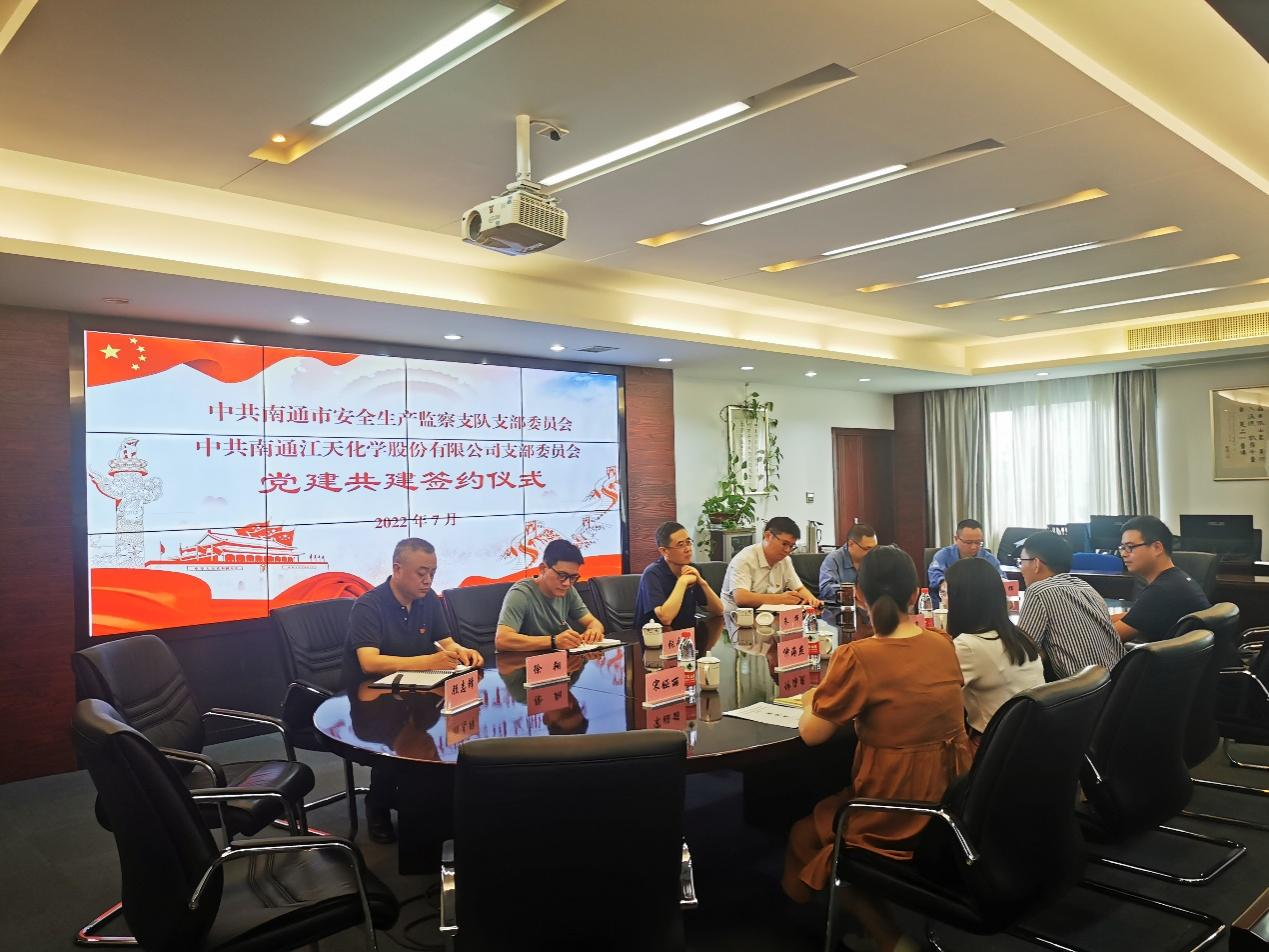 為認(rèn)真貫徹落實(shí)習(xí)近平總書記關(guān)于安全生產(chǎn)方面的重要論述,深化“紅色引領(lǐng) 綠色智造”黨建品牌建設(shè),深入推進(jìn)融合黨建實(shí)踐,提升安全生產(chǎn)管理工作成效。7月份,江天化學(xué)黨支部與南通市安全生產(chǎn)監(jiān)察支隊(duì)黨支部開展了黨建共建簽約儀式,進(jìn)一步加深合作交流,創(chuàng)新黨建結(jié)對(duì)共建形式。