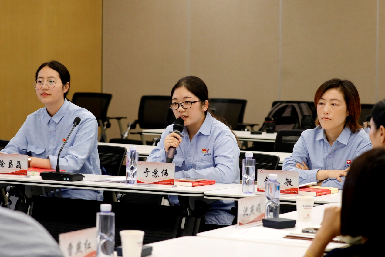 本次讀書(shū)分享會(huì)共分為“悅讀推薦”、“分享前行”、“交流互動(dòng)”、“贈(zèng)書(shū)合影”四個(gè)環(huán)節(jié)。分享會(huì)上,首先觀看了精華青年書(shū)籍推薦人對(duì)《榜樣的力量》、《牧羊少年奇幻之旅》兩本書(shū)籍的推薦視頻。在“分享前行”環(huán)節(jié)中,通過(guò)觀看共和國(guó)勛章獲得者簡(jiǎn)介和《牧羊少年奇幻之旅》拆書(shū)等視頻,進(jìn)一步加深了對(duì)兩本書(shū)的認(rèn)識(shí)。其中7名團(tuán)員青年代表還分別就“榜樣·青春有向”和“夢(mèng)想·青春有想”兩個(gè)方面,圍繞兩本書(shū)和自身工作實(shí)際,從不同的角度與大家分享了自己的閱讀收獲和所思所想、所感所悟。“交流互動(dòng)”中,團(tuán)員青年們還圍繞讀書(shū)會(huì)主題和“榜樣?夢(mèng)想”的話題發(fā)表了自己的看法。大家暢所欲言,發(fā)言觀點(diǎn)鮮明,啟迪思考、引發(fā)共鳴并與集團(tuán)領(lǐng)導(dǎo)進(jìn)行了交流互動(dòng)。