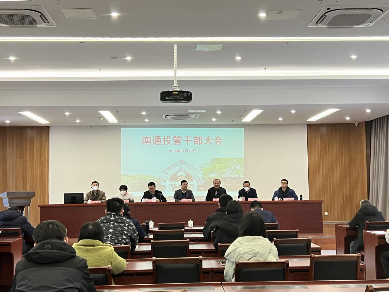 近日,南通投管在珠算博物館2號樓會議中心召開干部大會。集團黨委書記、董事長張劍橋,黨委副書記、總經理、副董事長顧建國,黨委副書記張建華,紀委書記張宏生出席會議,南通投管全體干部職工參加會議。