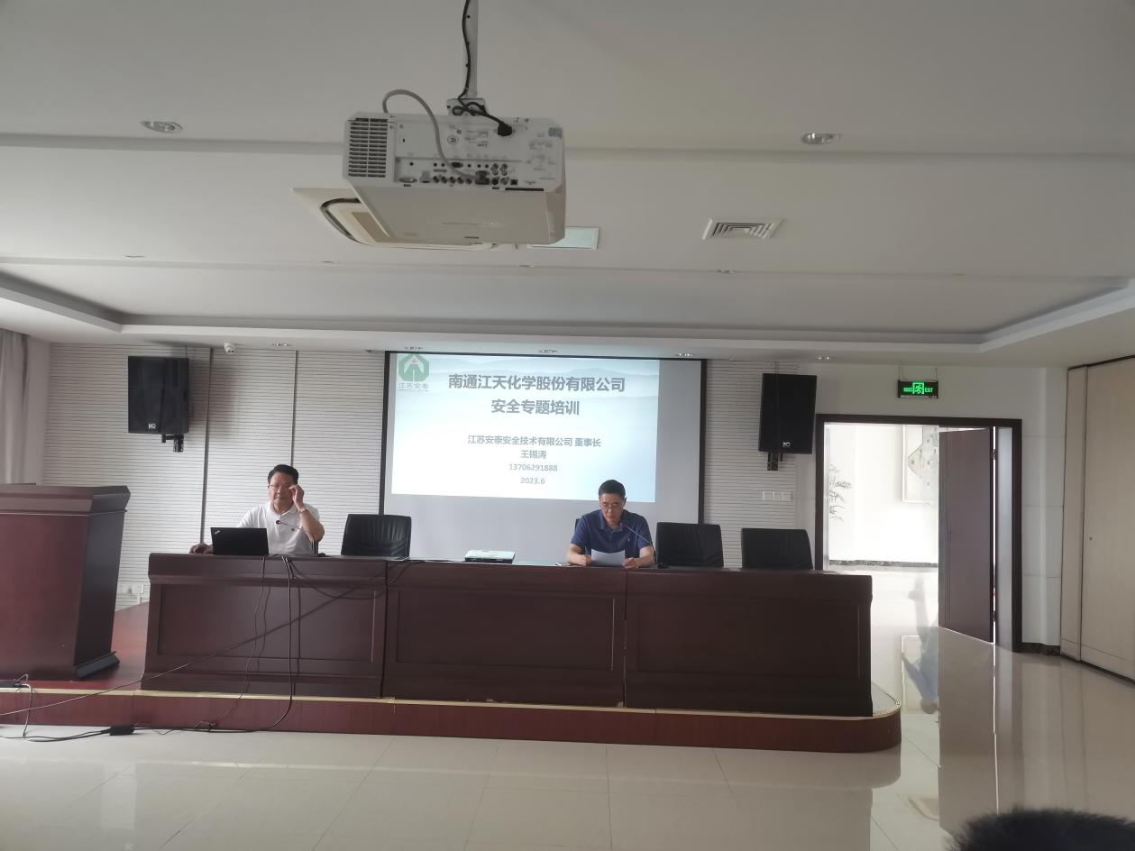為全面貫徹習近平總書記關(guān)于安全生產(chǎn)的重要論述,進一步提高全員安全意識,提升崗位人員的HSE實操技能,加強承包商作業(yè)管理,6月13日下午,南通江天化學股份有限公司結(jié)合“人人講安全、個個會應(yīng)急”的安全生產(chǎn)月活動主題,召開了半年度主要負責人HSE培訓大會。本次大會特邀江蘇安泰安全技術(shù)有限公司董事長王錫濤同志為公司全體員工、承包商代表做安全生產(chǎn)專題培訓講座。