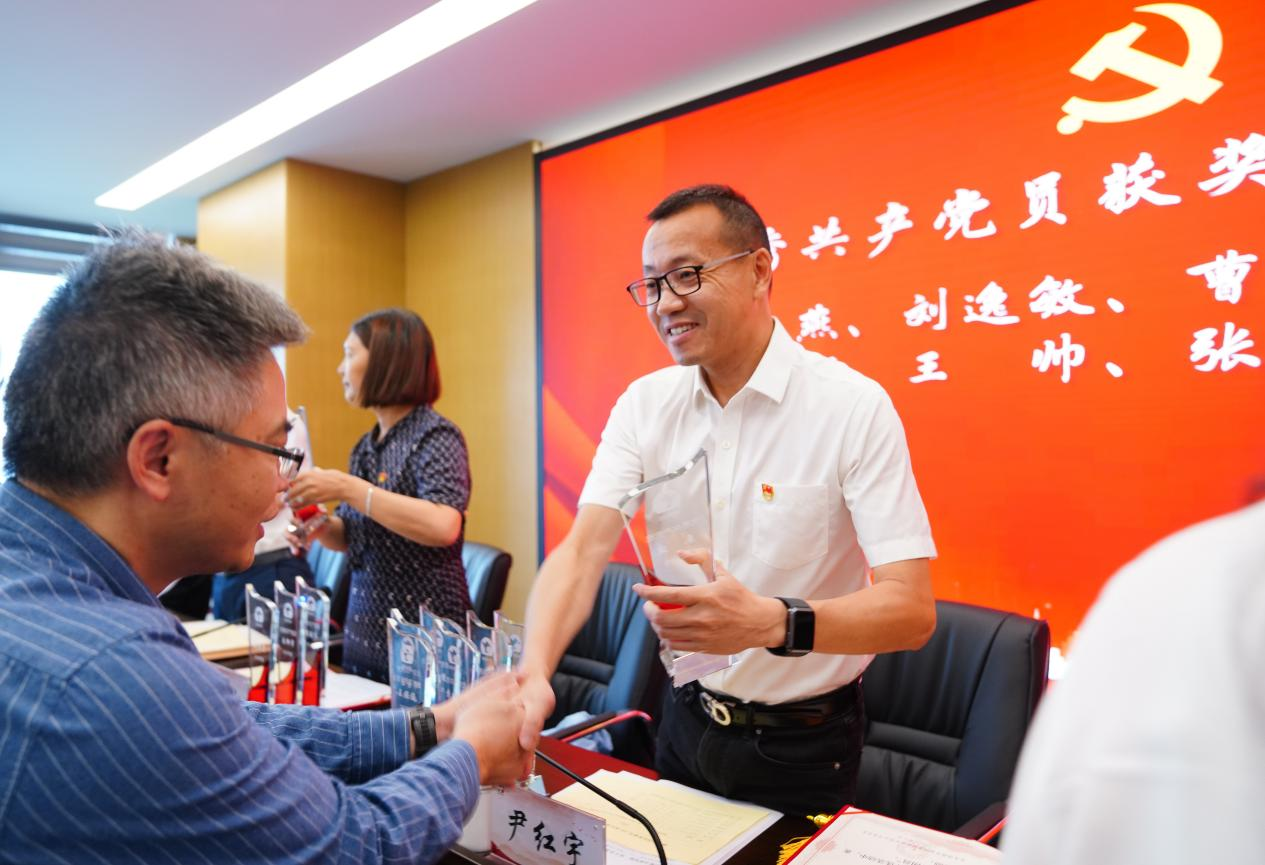 大會,在嘹亮的國歌聲中拉開了帷幕。會上,集團(tuán)黨委副書記錢衛(wèi)峰宣讀了《關(guān)于表彰優(yōu)秀共產(chǎn)黨員、優(yōu)秀黨務(wù)工作者的決定》和《關(guān)于表彰優(yōu)秀共青團(tuán)員、優(yōu)秀團(tuán)干部、五四(流動)紅旗團(tuán)支部的決定》。集團(tuán)黨委班子成員分別向26名優(yōu)秀黨員、7名優(yōu)秀黨務(wù)工作者,10名優(yōu)秀共青團(tuán)員、6名優(yōu)秀共青團(tuán)干部以及五四紅旗團(tuán)組織獲得者分別頒發(fā)了獎杯、榮譽(yù)證書和流動紅旗。 會上,曹燕紅帶領(lǐng)8名新黨員舉行入黨宣誓儀式,全體黨員肅穆起立,莊嚴(yán)宣誓,老黨員重溫入黨誓詞。 會上還對10名整齡黨員開展了集體過政治生日活動,送上了政治生日蛋糕和賀卡,給予了政治生日的祝福。具有30年黨齡的東力化工黨支部書記王???span>和10年黨齡的資產(chǎn)財務(wù)部會計陸丁利,分別代表老黨員和青年黨員做了代表發(fā)言,他們結(jié)合自身經(jīng)歷,生動了闡述了近年來企業(yè)的發(fā)展變化、和高質(zhì)量發(fā)展所取得成績,以及自身成長的變化,并號召全體黨員要牢記使命,跟黨走,在推動打造精華“百年老店”的新征程上再立新功!